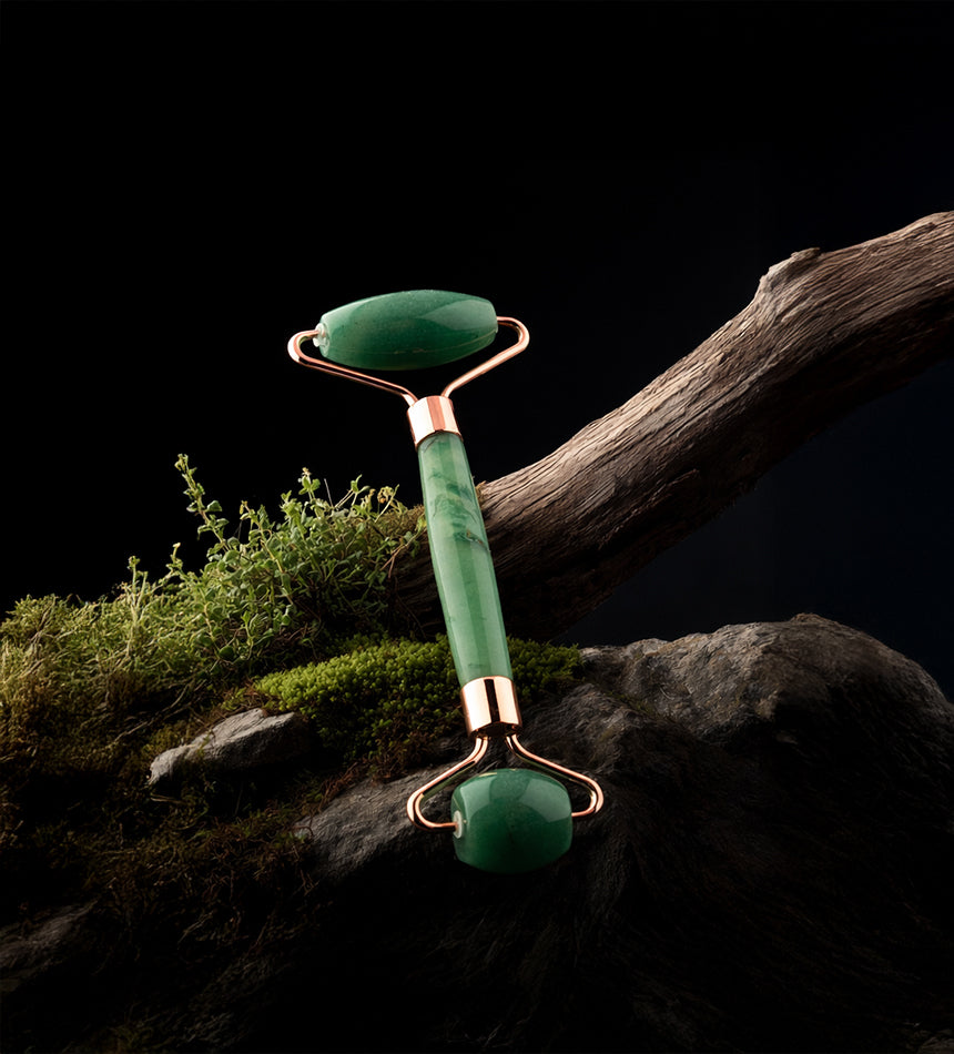 Sertifikalı Yeşim Doğal Taşı Roller Ve kaz Ayağı Gua Sha Masaj Takımı Ma033