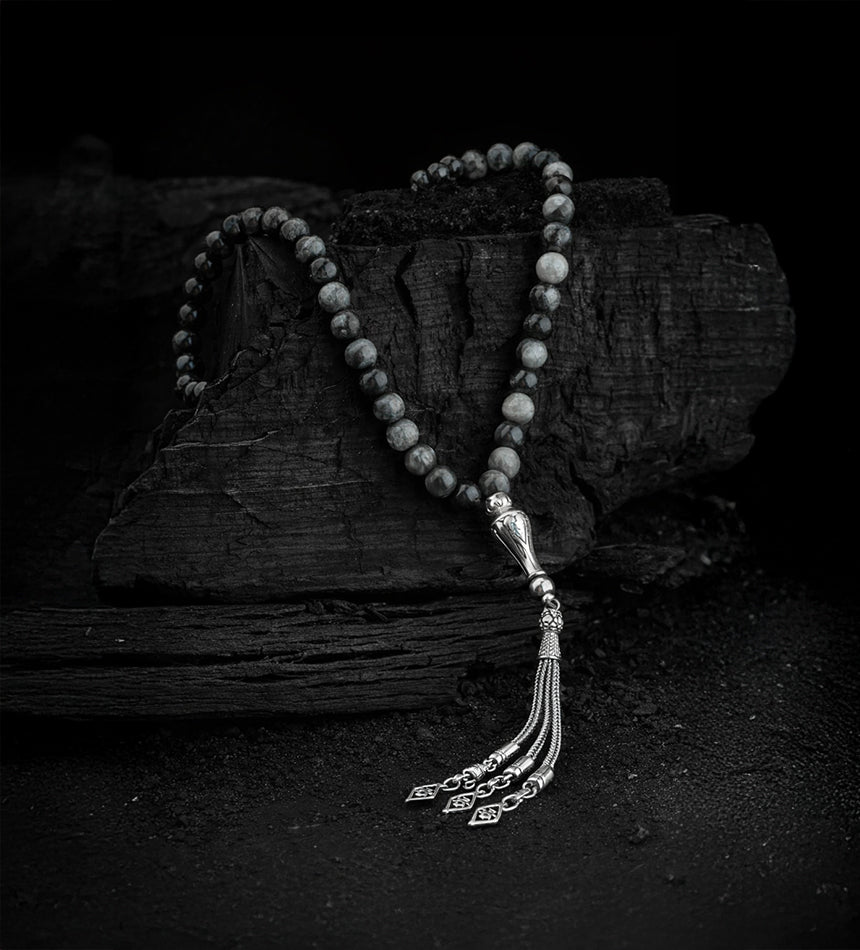 Sertifikalı Yemen Akik Doğal Taş 33'lük Gümüş Tesbih